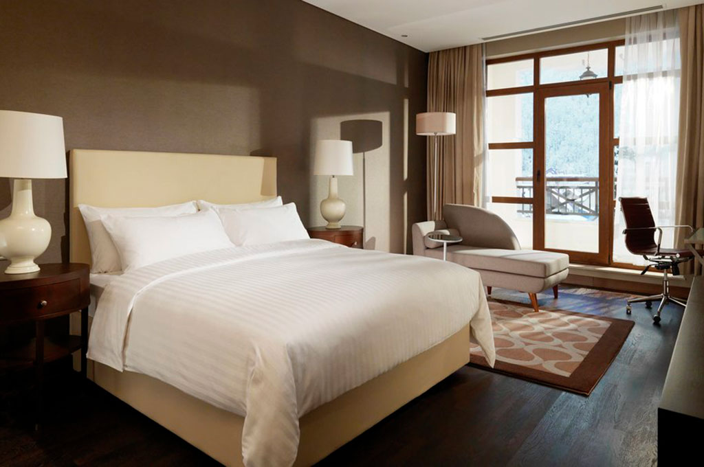 Отдохните в горах в отеле «Сочи Марриотт Красная Поляна». Вы можете наслаждаться теплотой ароматного глинтвейна, париться в бане и дышать свежим горным воздухом.